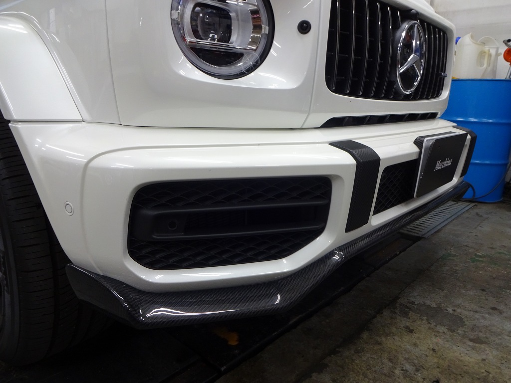 新車でご依頼いただいた、FさんのG63 AMG。早速ローダウンさせていただき、各部のカーボン水圧転写を施しました。
