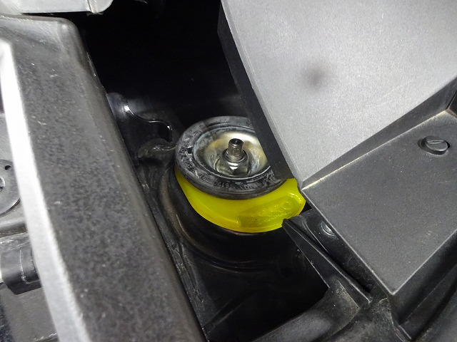 シェブロンレーシングS1Nの16インチゴールドディスクを装着する事でとてもスタイリッシュに決まった、Gさんのアバルト595モンスターエナジーヤマハ。