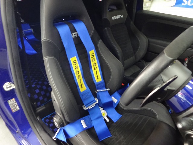 特注色シェブロンレーシングM2とKW V1車高調でローダウンした、Mさんのアバルト595コンペティツォーネ。REMUSマフラーも装着され、ジェントルな音質を手に入れました!