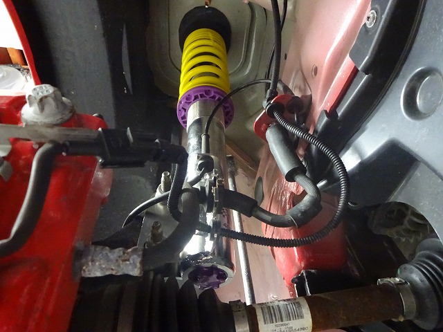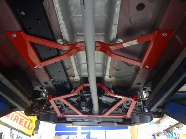 KW V3車高調+75パフォーマンスフロアブレースで素晴らしいシャーシに決まった、Mさんのアバルト595コンペティツィオーネ。
