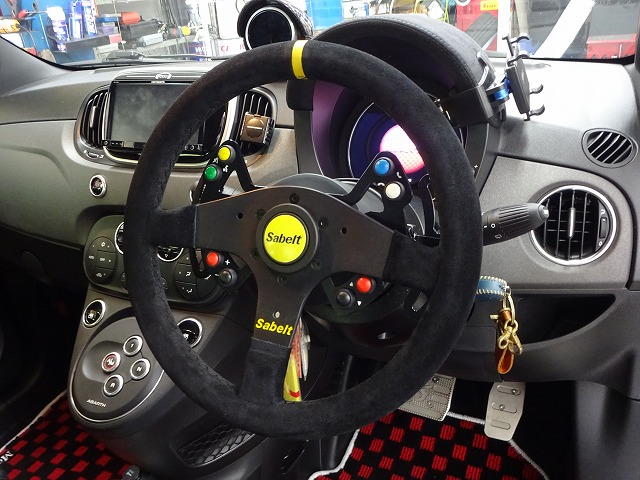 OZレジェンダ17インチ+KW車高調を装着された、Kさんのアバルト595コンペティツィオーネ。BMC OTAカーボンインテークキットとDefiメーター、またカチカチパドルシフトキットも装着され、スポーティーに決まりました♪