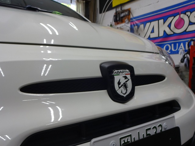 HOME > Custom Gallery:フィアット&アバルト > 岡山県からご来店のコンペをエンブレムカット&メッシュ施工。