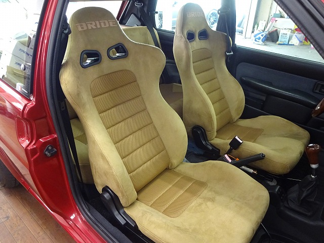 チビッ子ギャング的かわいさが魅力の、Kさんプジョー106。ネオクラ仕上げのホットハッチが、痛快です〜!水圧転写カーボン仕上げのワンオフリップや、インテリアもBRIDE2脚+リヤシート張替えでとってもハイセンスです〜!
