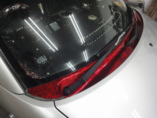 この新素材はランボルギーニ・ウラカン・ペルフォルマンテに純正採用されて話題になりましたが、マッキナではこの柄を自動車カスタム業界に普及させようと水圧転写で表現しました。