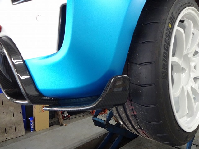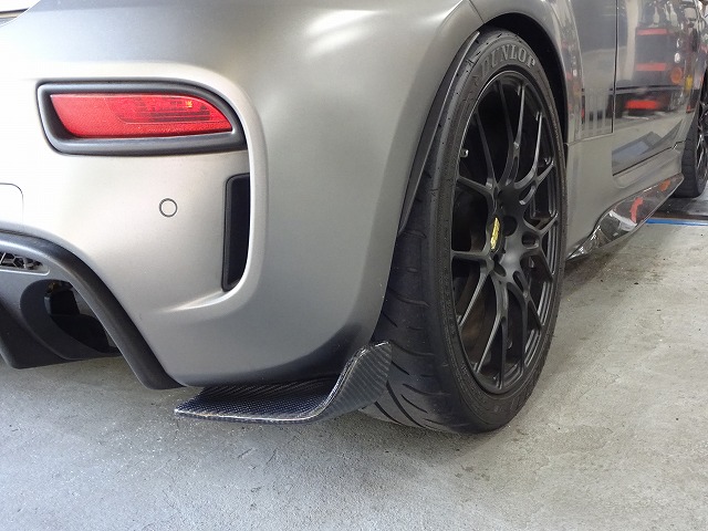 写真の車両はハイブリッドカーボン製(ダクト部分のみカーボン)をボディ色に塗装して装着しています。